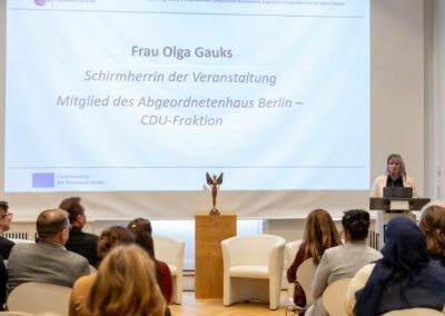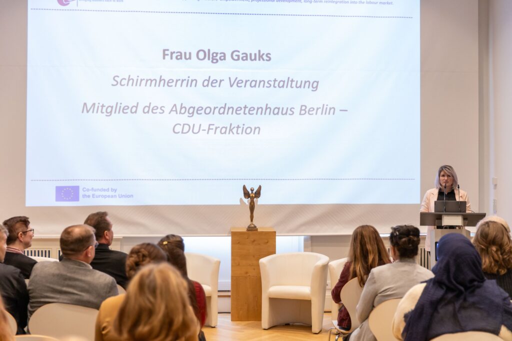 Die Veranstaltung wurde von Olga Gauks, Mitglied des Abgeordnetenhauses und Schirmherrin des Projekts, eröffnet. In ihrer Begrüßung betonte sie die Bedeutung von Chancengleichheit und die Rolle von Müttern in der beruflichen Weiterbildung. Ihre Worte unterstrichen das Ziel von MothersCan, Müttern die notwendigen Ressourcen und Netzwerke zu bieten, um ihre beruflichen und persönlichen Potenziale zu entfalten.